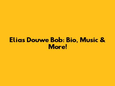 Elias Douwe Bob: Bio, Music & More!