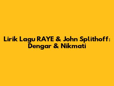 Lirik Lagu RAYE & John Splithoff: Dengar & Nikmati
