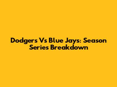 Dodgers Vs Blue Jays: Season Series Breakdown