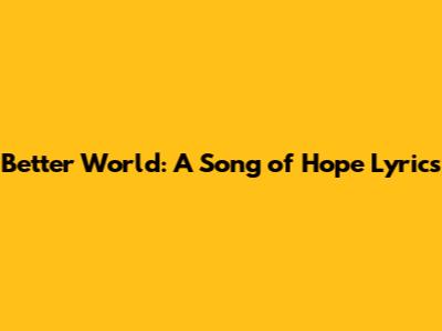 Better World: A Song Of Hope Lyrics