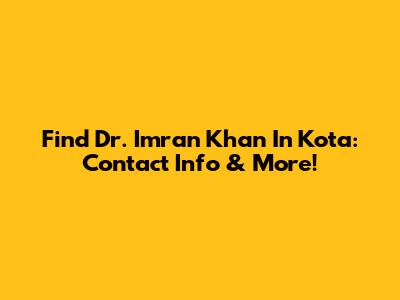 Find Dr. Imran Khan In Kota: Contact Info & More!