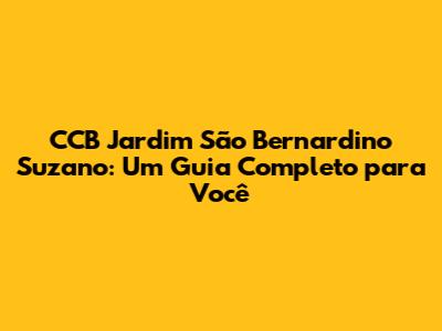 Em resumo, a CCB Jardim São Bernardino Suzano é muito mais do que apenas um templo; é um verdadeiro lar espiritual para muitos. Com sua comunidade acolhedora, atividades diversificadas e um ambiente propício para o crescimento na fé, a congregação se destaca como um ponto de luz e esperança em Suzano. Se você busca um lugar para se conectar com Deus, com pessoas que compartilham dos mesmos valores e com um propósito de vida, este é o lugar. Venha conhecer, participe dos cultos e eventos, e sinta a diferença que um ambiente de amor e comunhão pode fazer. A equipe e os membros estão sempre de braços abertos para receber você. Agradecemos a sua leitura e esperamos ter contribuído para que você conheça um pouco mais sobre a CCB Jardim São Bernardino. Que Deus abençoe a sua jornada!