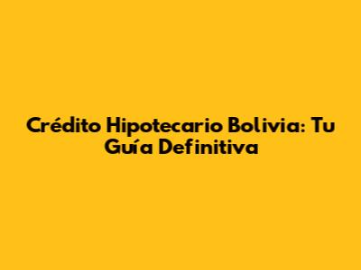 Crédito Hipotecario Bolivia: Tu Guía Definitiva