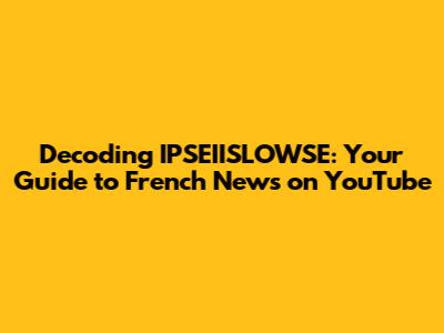 Decoding IPSEIISLOWSE: Your Guide To French News On YouTube