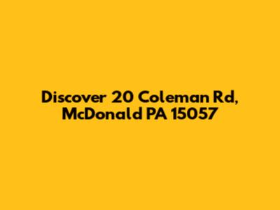Hey there, home seekers and property enthusiasts! Are you on the hunt for a new pad in the charming town of McDonald, Pennsylvania? Well, get ready to be excited because we're diving deep into a property that might just be your dream come true: 20 Coleman Rd, McDonald PA 15057. This isn't just another address; it's a potential new chapter waiting to be written. Whether you're a first-time buyer, looking to upgrade, or seeking a solid investment, understanding what this property offers is key. We'll be breaking down everything you need to know, from its location and features to what makes this slice of McDonald so special. So, buckle up, grab a coffee, and let's explore the ins and outs of 20 Coleman Rd.