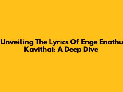 Unveiling The Lyrics Of 'Enge Enathu Kavithai': A Deep Dive