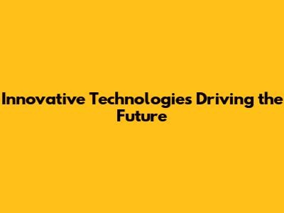 Innovative Technologies Driving The Future