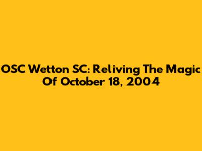 OSC Wetton SC: Reliving The Magic Of October 18, 2004