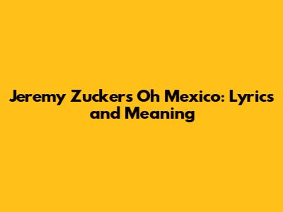 Hey guys! Ever find yourself vibing to a song and just needing to know what it's all about? Today, we're diving deep into Jeremy Zucker's chill track, "Oh Mexico." This song is more than just a catchy tune; it's a whole mood. We're going to break down the lyrics, explore the possible meanings, and basically, get to the heart of what makes this song so relatable. So, grab your headphones, maybe a snack, and let's get started!