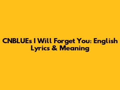 CNBLUE's "I Will Forget You": English Lyrics & Meaning