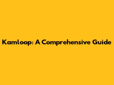 Kamloop: A Comprehensive Guide