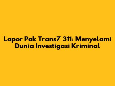 Lapor Pak Trans7 311 adalah salah satu program investigasi yang sangat populer di Indonesia, ditayangkan oleh stasiun televisi Trans7. Program ini dikenal karena keberaniannya dalam mengungkap berbagai kasus, mulai dari kriminal hingga isu-isu sosial dan politik yang kompleks. Dengan gaya penyajian yang khas dan didukung oleh tim investigasi yang solid, Lapor Pak Trans7 berhasil menarik perhatian jutaan pemirsa. Mari kita selami lebih dalam tentang bagaimana program ini bekerja, jenis kasus apa yang diangkat, serta dampaknya bagi masyarakat.