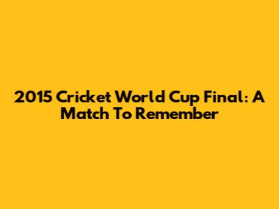 2015 Cricket World Cup Final: A Match To Remember