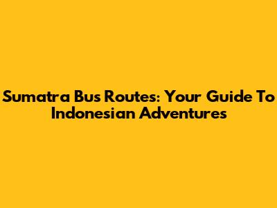 Sumatra Bus Routes: Your Guide To Indonesian Adventures