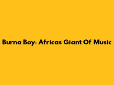 Burna Boy: Africa's Giant Of Music