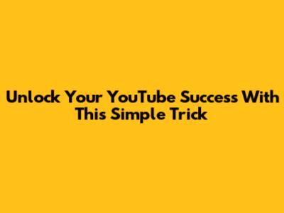 Unlock Your YouTube Success With This Simple Trick