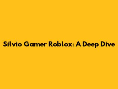 Silvio Gamer Roblox: A Deep Dive