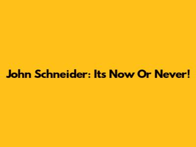 John Schneider: It's Now Or Never!