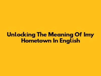 Unlocking The Meaning Of "Imy Hometown" In English