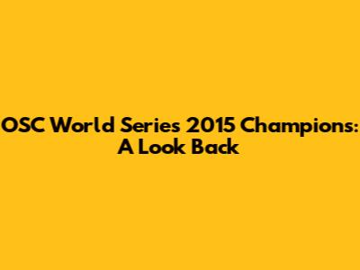OSC World Series 2015 Champions: A Look Back
