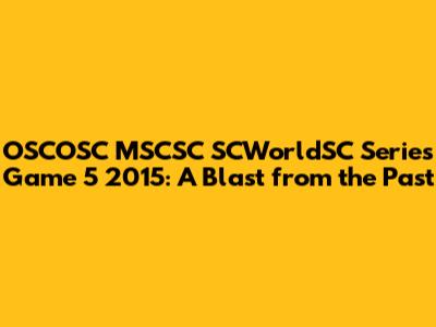 OSCOSC MSCSC SCWorldSC Series Game 5 2015: A Blast From The Past