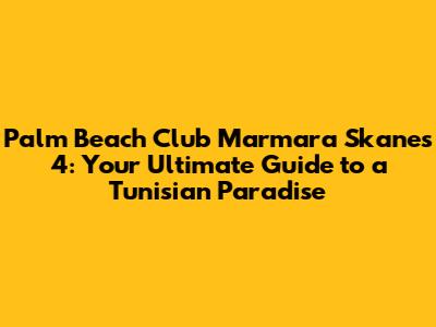 Hey everyone! Planning a vacation and dreaming of sun-soaked beaches, crystal-clear waters, and a vibrant atmosphere? Look no further! I'm here to give you the lowdown on the Palm Beach Club Marmara Skanes 4 in Sousse, Tunisia. This place is seriously amazing, offering a fantastic blend of relaxation and excitement. Whether you're a seasoned traveler or just starting to explore, I'll walk you through everything you need to know to make your trip unforgettable. From the stunning location to the awesome activities and comfy accommodations, we'll cover it all. So, grab your virtual sunscreen, and let's dive into the details of this Tunisian gem!