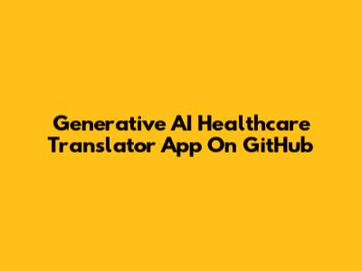 Generative AI Healthcare Translator App On GitHub