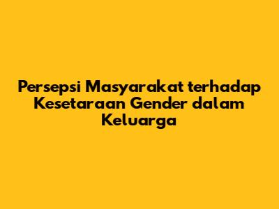 Persepsi masyarakat terhadap kesetaraan gender dalam keluarga adalah isu kompleks yang dipengaruhi oleh berbagai faktor, termasuk budaya, pendidikan, dan pengalaman pribadi. Persepsi ini memiliki dampak yang signifikan terhadap harmoni keluarga, kesejahteraan, dan perkembangan anak-anak. Masyarakat yang mendukung kesetaraan gender cenderung memiliki keluarga yang lebih bahagia dan sukses, sementara masyarakat yang tidak mendukung kesetaraan gender cenderung memiliki keluarga yang lebih rentan terhadap konflik dan masalah lainnya. Oleh karena itu, penting untuk mempromosikan kesadaran dan pemahaman tentang kesetaraan gender dalam keluarga, agar kita dapat menciptakan masyarakat yang lebih adil, inklusif, dan berkelanjutan.