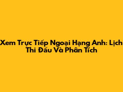 Xem Trực Tiếp Ngoại Hạng Anh: Lịch Thi Đấu Và Phân Tích