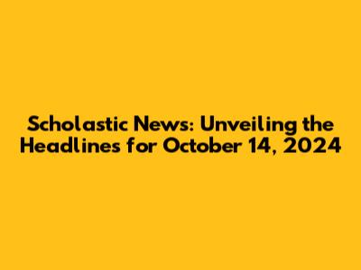 Alright, guys, let's get into the nitty-gritty of what's happening. The Scholastic News of October 14, 2024, likely focuses on a variety of important topics relevant to students. Given the date, we can expect coverage on current events that reflect the global landscape. Topics like government and current laws are very important. Expect to see articles about climate change. News about technological advancements will also be present, such as AI, robotics, and space exploration. There could be special features on different cultures, highlighting unique traditions, foods, and historical landmarks. Sports are always a hit, so there will likely be coverage of recent games or athlete profiles. Scholastic News usually aims for a balanced approach, presenting a mix of local, national, and international stories, making sure kids get a well-rounded view of the world.