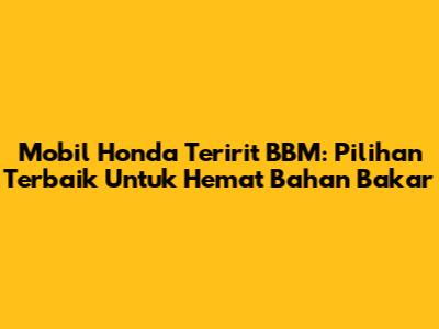 Mobil Honda Teririt BBM: Pilihan Terbaik Untuk Hemat Bahan Bakar
