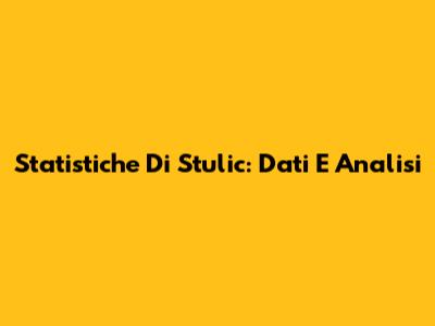 Statistiche Di Stulic: Dati E Analisi