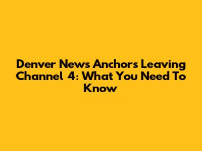 Denver News Anchors Leaving Channel 4: What You Need To Know