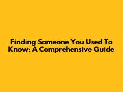 Finding Someone You Used To Know: A Comprehensive Guide