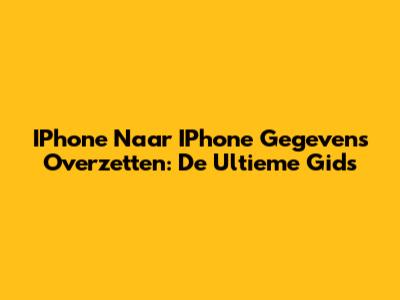 IPhone Naar IPhone Gegevens Overzetten: De Ultieme Gids