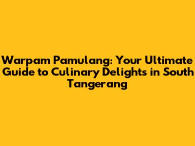 Hey foodies and adventure seekers! If you're looking for a culinary adventure in the heart of South Tangerang, you've landed in the right spot! Today, we're diving headfirst into the vibrant world of Warpam Pamulang. This isn't just about finding a place to eat; it's about uncovering a hidden gem, a food haven bursting with flavors, and experiences. We'll be your guides, navigating the bustling streets of Pamulang, uncovering the best warungs (small, local eateries), restaurants, and hidden culinary treasures that will leave your taste buds singing. Get ready to explore the delicious world of Warpam Pamulang, where every corner offers a new gastronomic delight.
