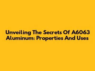 Unveiling The Secrets Of A6063 Aluminum: Properties And Uses