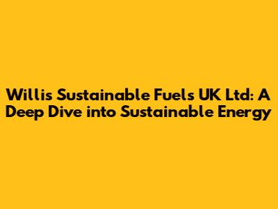 Hey guys! Let's dive into the world of Willis Sustainable Fuels UK Ltd. This is a company making some serious waves in the renewable energy sector, and we're going to break down everything you need to know about them. We'll explore what they do, their mission, the impact they're making, and what the future holds for this exciting player in the sustainable fuels game. Get ready for a deep dive, because understanding companies like Willis Sustainable Fuels UK Ltd is crucial for staying informed about the shift toward a greener future. It's not just about business; it's about the planet, right? So, let's get started!