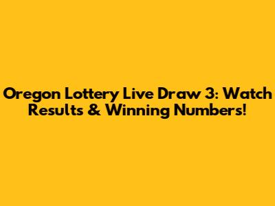 Oregon Lottery Live Draw 3: Watch Results & Winning Numbers!